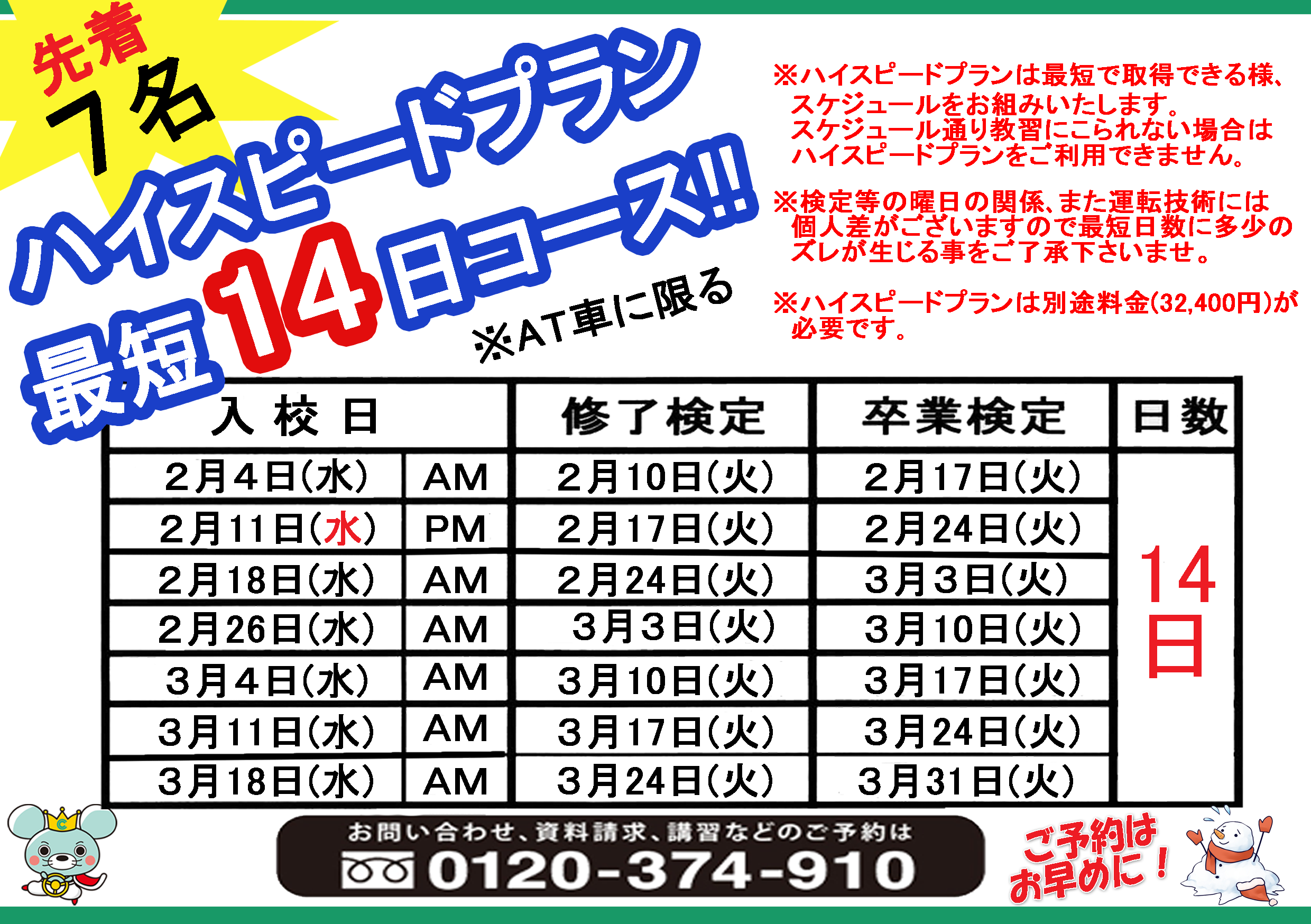 最短14日で取得するハイスピードプランと16日~20日で取得するハイスピードプランがあります